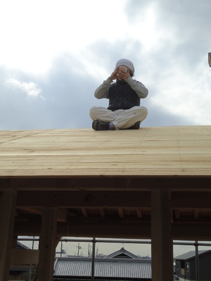 二階でお茶を点てて茶碗持ったまま大屋根へ