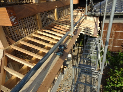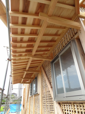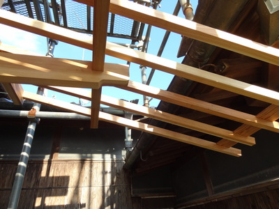 広木舞を取り付けると軒先が安定してきました