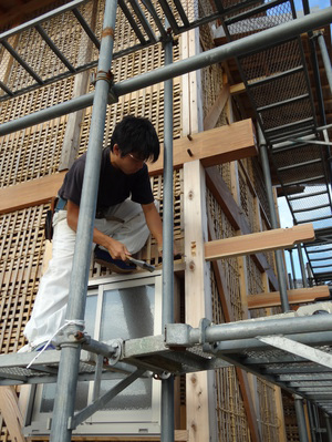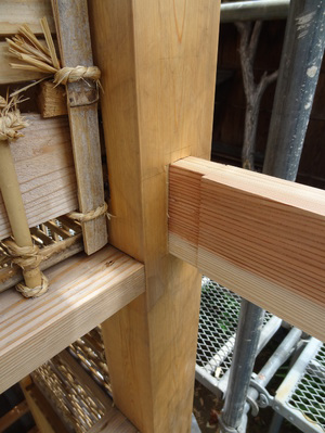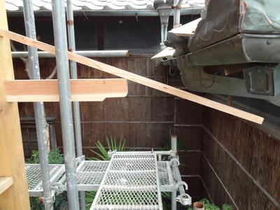 隅腕木は無しで西側も二間半(5m)の庇になります