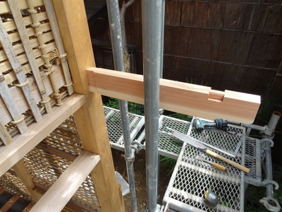 桁の長さが二間半(5m)を用するので追っ掛けの継手に加工します