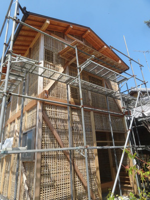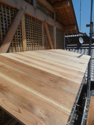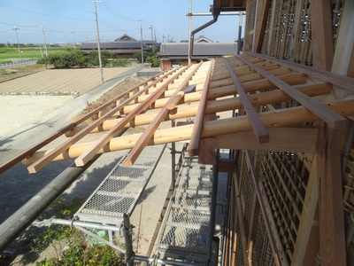 軒先の桟を打ち付けると真ん中の起くりの調子が良く分かります