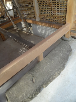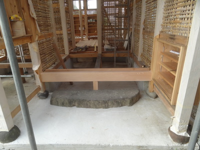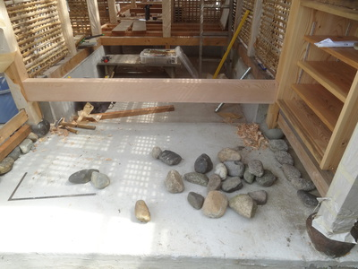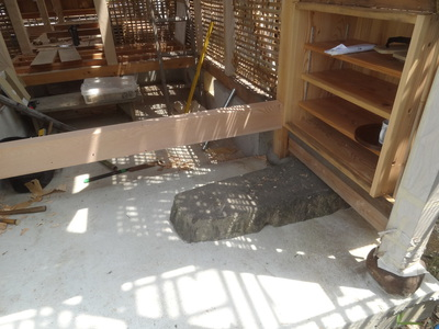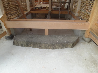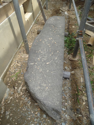 そして基礎の傍らに保管していた沓脱石も設置に試みます