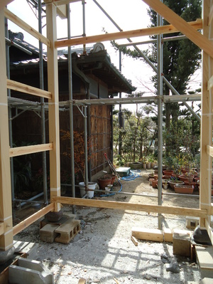 竹木舞の下地を施す前に設置場所を確定します