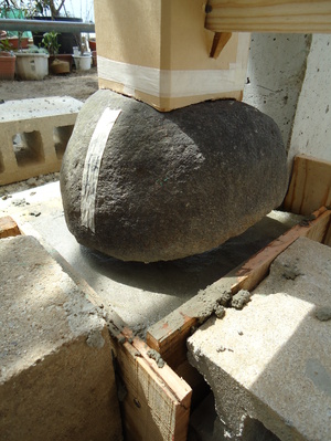 隅の根石です、この柱がこけると大打撃を被ります