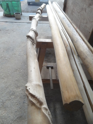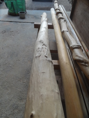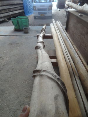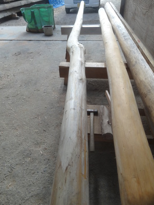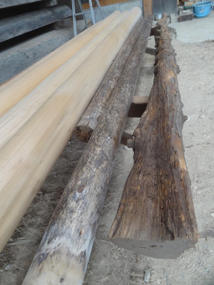 三寸五分の角柱に合いそうな元口五寸ほどの磨き丸太に