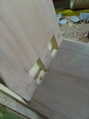 材が仕上がれば木槌で溝に入る部分を木殺しします
