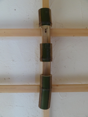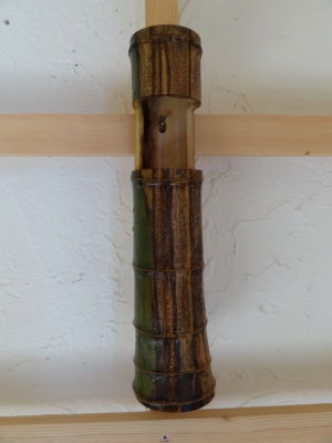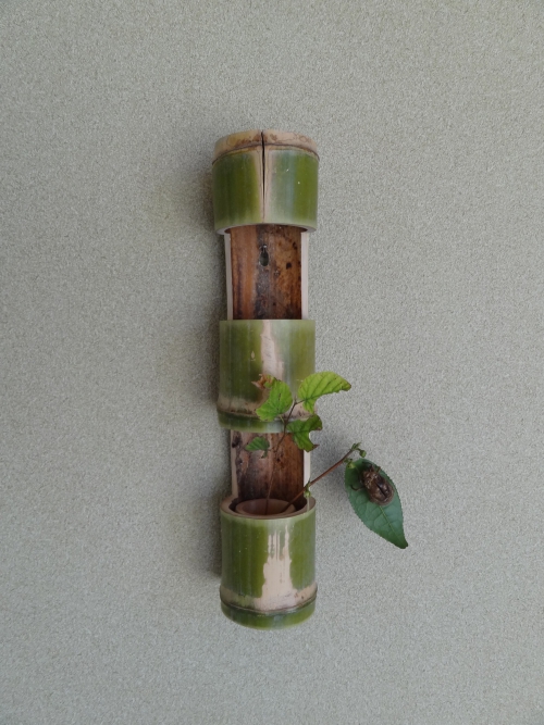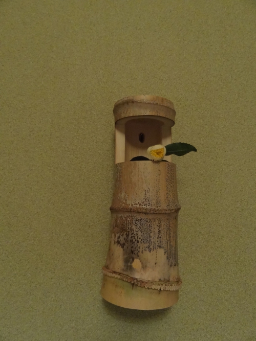 半枯れの竹を使っての花入れです
