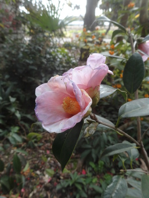 もちの葉を座に、かえって目立つ迷彩柄に変色
