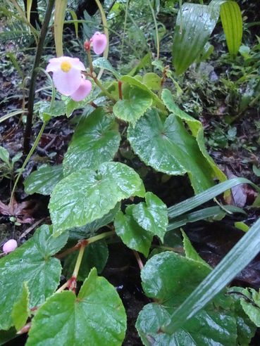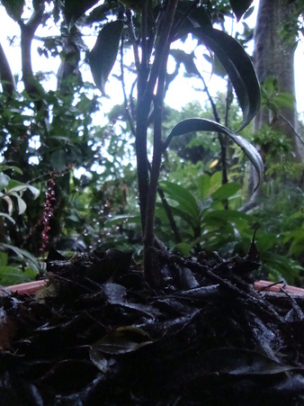 花筏は、葉の上に花を咲かせる珍しい低木です