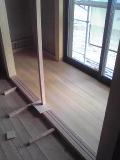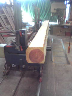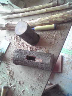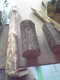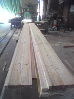 大鋸を挽いたり、杉の丸太を鉞ではつったりして